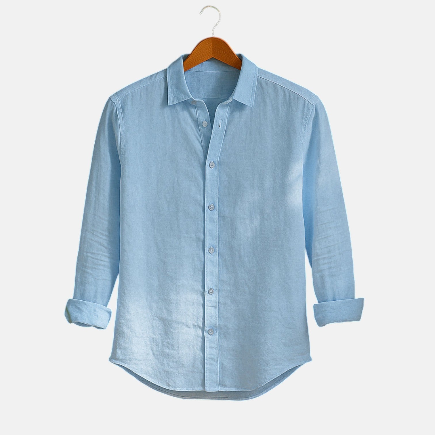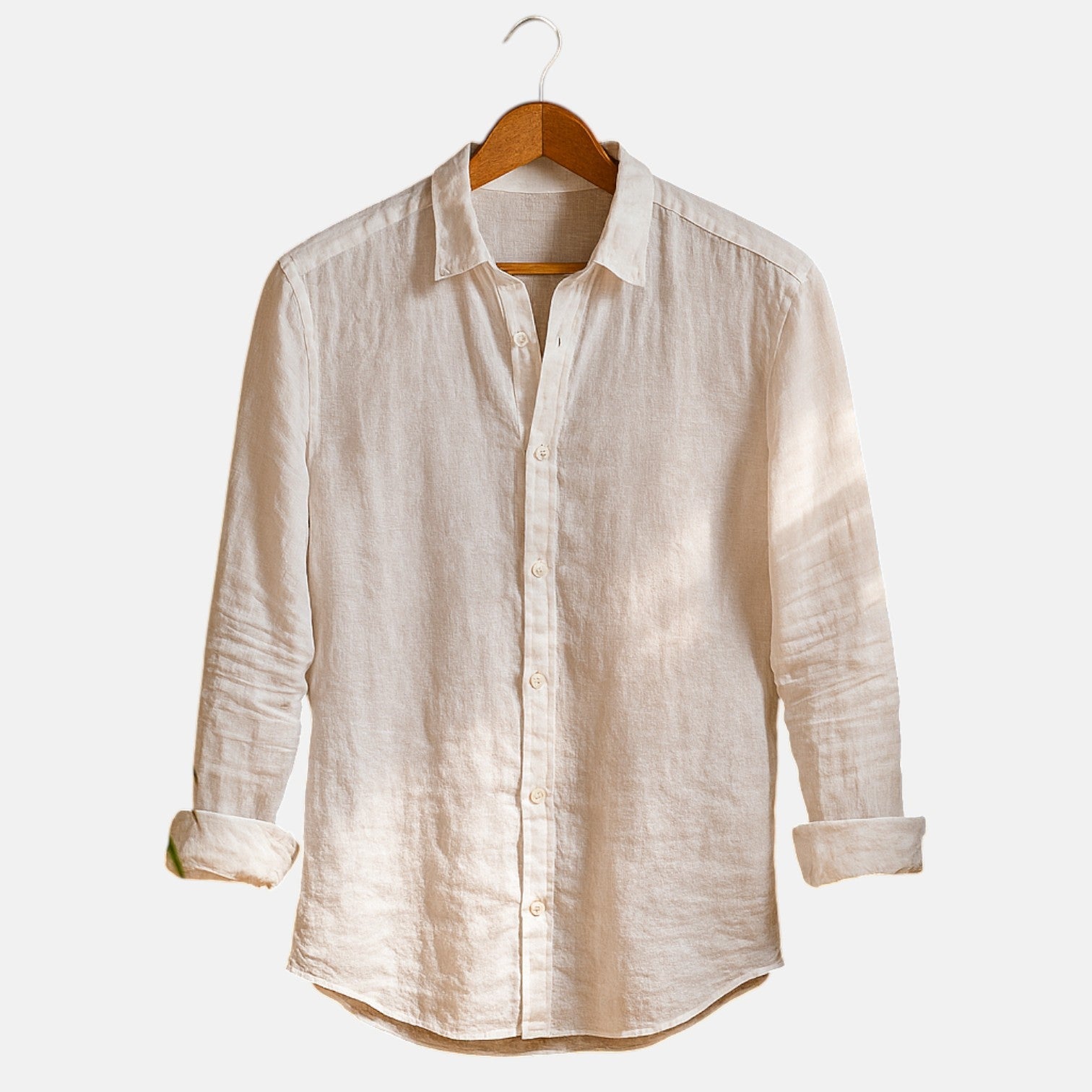 Das Hemd Rodelio™ besteht aus einer hochwertigen Mischung aus Leinen und Baumwolle, leicht und atmungsaktiv, ideal für die warmen Tage mit Stil und Komfort. Das Design mit entspanntem Kragen und klarer Linie macht es perfekt, um es mit maßgeschneiderten Hosen oder eleganten Bermudas für einen gepflegten, aber informellen Look zu kombinieren.